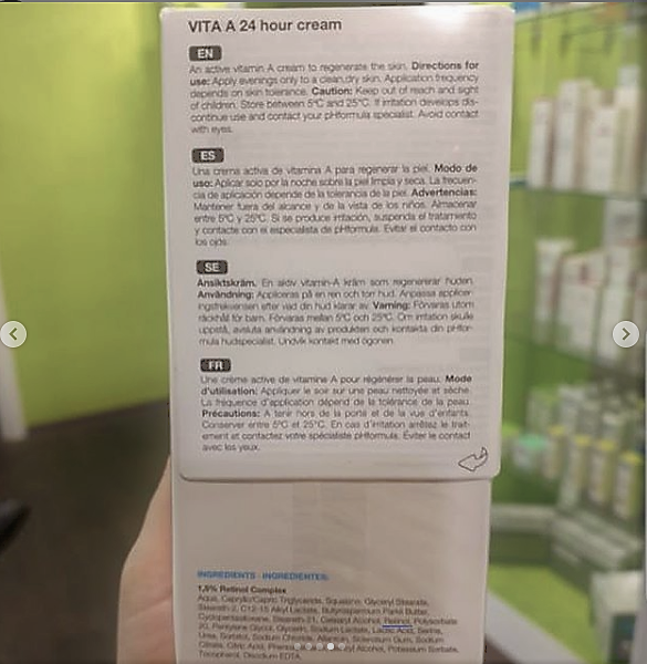 Средство, которое я люблю добавлять в ПРОФ протоколы, - это крем А от "pHformula". Содержание ретинола - 1.5%, поэтому работает очень мощно и интенсивно. Мы используем его не каждую ночь, вводим в уход плавно, начиная с 1 раза в неделю. У кого-то даже при такой частоте использования кожа начинает обновляться через заметное шелушение.