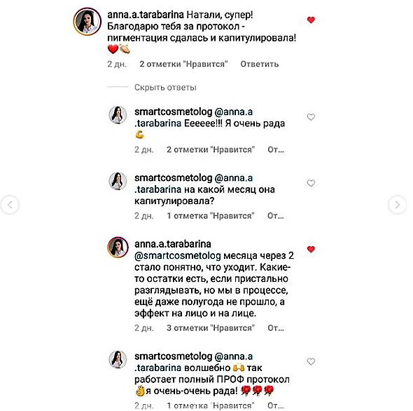 Таким образом, мы достигаем достаточно быстрых результатов. Причём я рекомендую лечить пигментацию 1 календарный год, но многие видят улучшения быстрее.