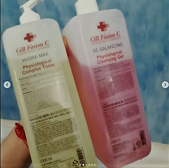 Тоник и гель для умывания Cell fusion в литровых упаковках. Блин, там вообще не убывает. Хотя я и маме отливаю, и мужу с собой. Тут даже считать нет смысла, на год запас точно. Если не больше.