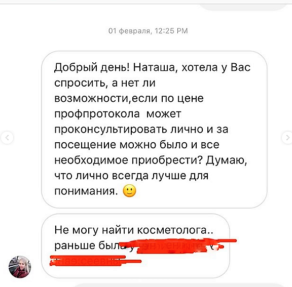 Раньше я очень переживала отказываясь, от просьб взять ещё одного, а потом ещё одного нового клиента на приём. А теперь я вижу, что от этого выигрывают все: все, кто читают мой блог - получают мой опыт, который отработан годами практики с постоянными клиентами, поэтому я вижу как будет работать ваша кожа на моих рекомендациях через месяц, пол года, несколько лет.